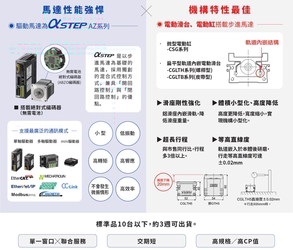 2000年成立,專精於滑台模組、電動缸等研發製造,屢獲台灣精品獎之殊榮,更以「合理成本」、「高標品質」、「交貨迅速」為產品開發依據,來滿足客戶需求。