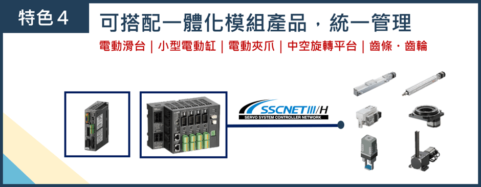 可透過SSCNETⅢ/H通訊協定直接控制的驅動器與馬達/電動模組產品