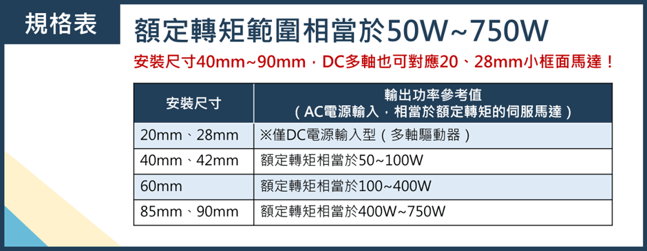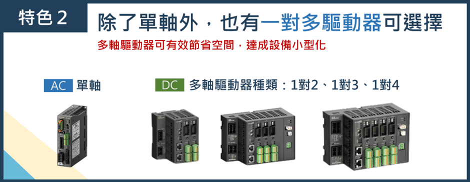 馬達的瓦數範圍對應至50W~750W,並且備有多軸驅動器可節省空間。